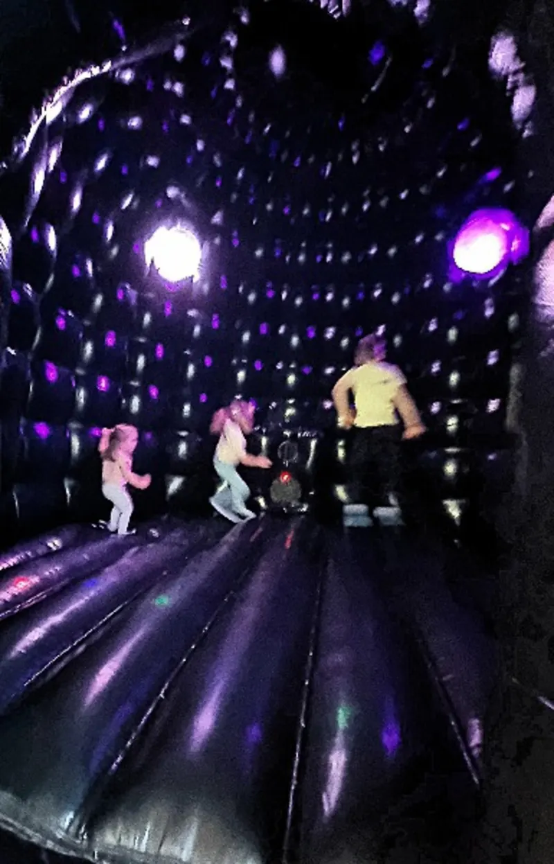 Our unique disco bouncy castle will bring every party alive. There so much fun for any kind of events. It comes complete with Bluetooth Speakers and Disco Lights and it has a large bounce area so it's perfect for both adults and children. Fun for all ages with your own playlist. Do not hesitate to book it now as it is really popular.