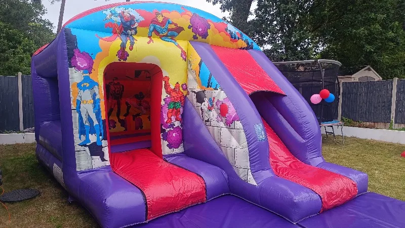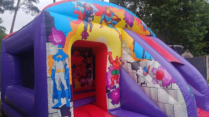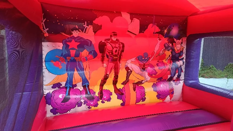 A really popular bouncy castle due to its superhero artwork and great size. Perfect for any heros, its sure to be fun. Ideal for most halls and gardens.